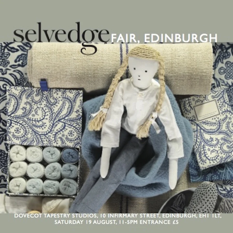 SELVEDGE FAIR, EDINBURGH Saturday, August 19, 2017 11:00 AM 5:00 PM 11:00 17:00 Dovecot Studios 10 Infirmary Street Edinburgh, Scotland, EH1 1LT United Kingdom (map) Google Calendar ICS On Saturday 19th of August we are taking part in this wonderful textiles and craft fair organized and curated by cult magazine Selvedge. It will be held in the beautiful Dovecot Tapestry Studios in the heart of Edinburgh's historic old town. Dovecot Studios, Edinburgh Dovecot Studios, Edinburgh No. 1 on the map: Dovecot Studios! Open to the public from 11am until 5pm. For more info see the Selvedge Website.